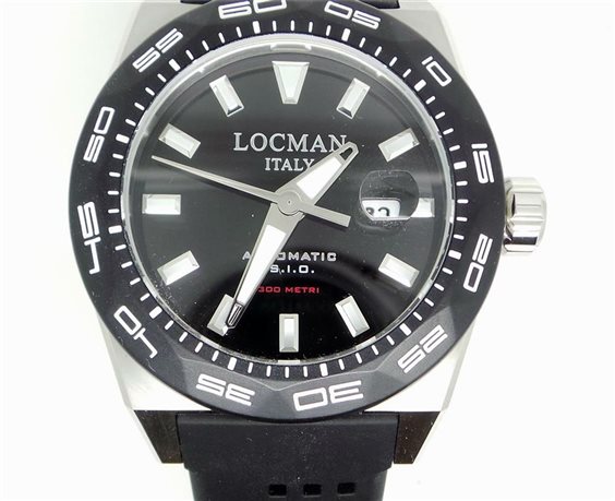orologio in titanio e acciaio 45mm, sub professionale 30atm con corona a vite, movimento automatico con calibro di produzione SIO Locman ( scuola orologeria italiana), indici applicati e vetro zaffiro, cinturino silicone con chiusura ardiglione, ghiera girevole di profondità unidirezionale