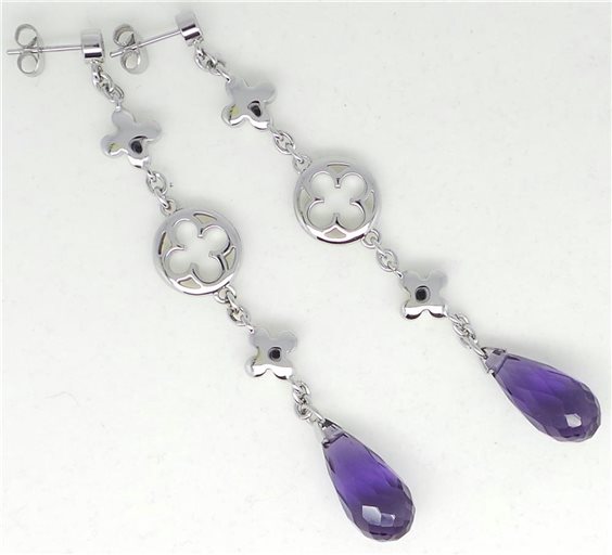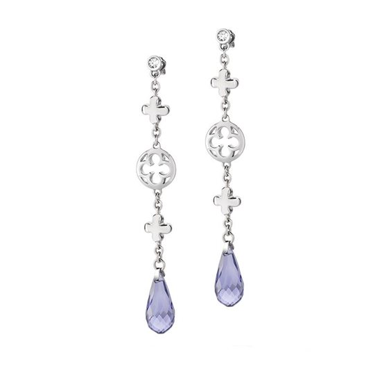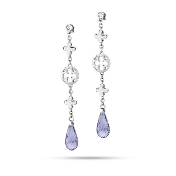 Orecchini in acciaio 316L , pendenti lunghezza 8 cm con cristalli sfaccettati color tanzanite , 2 diamanti naturali selezionati&pietre sintetiche. Peso tot.10,5grammi. Materiale acciaio. Garanzia 2 anni.