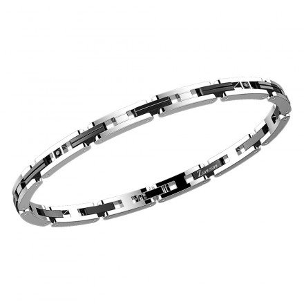 Bracciale da uomo con maglie alternate in acciaio lucido e nero, spinelli neri alternati nella parte centrale. Chiusura ad incastro.